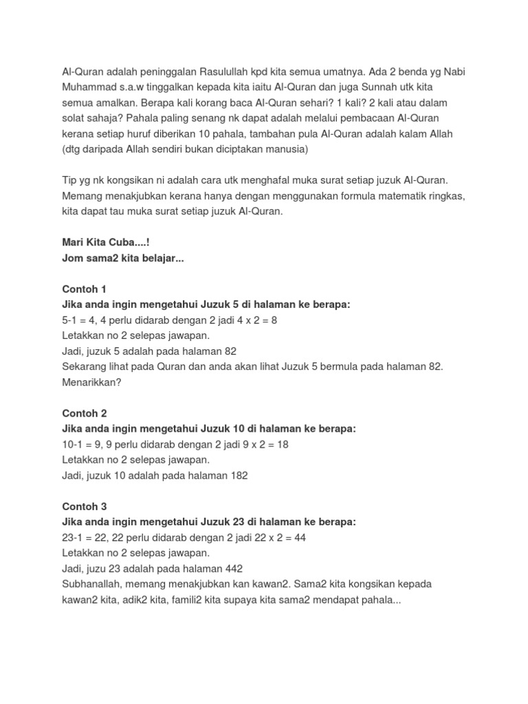 Cara2 Nk Taw Muka Surat Al Quran Juzuk