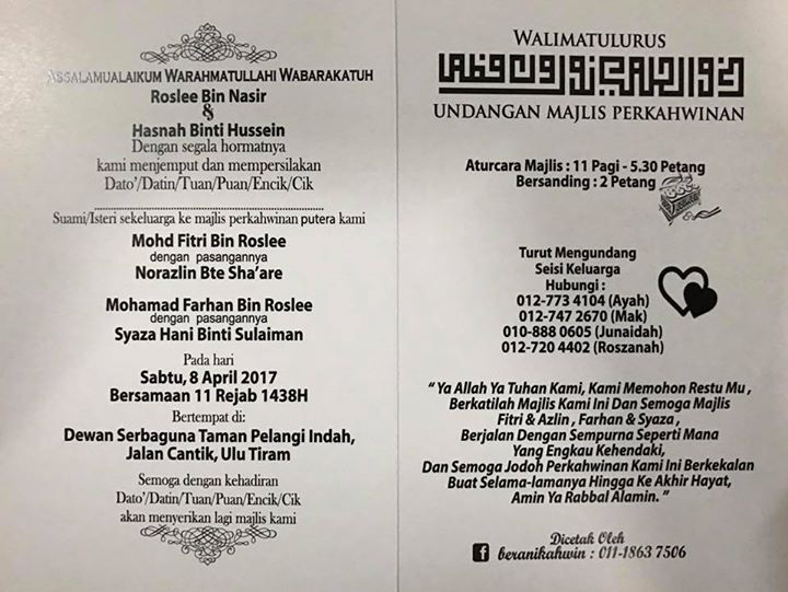 Aturcara Majlis Perkahwinan Fariz Fatimah