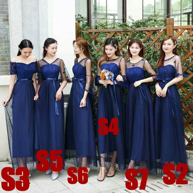 Bridesmaid Dress Baju Pesta Pangapit Pengantin Biru Navy Shopee