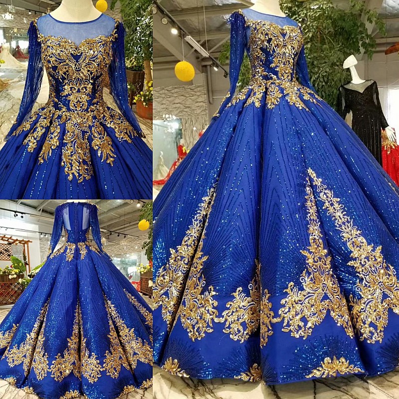 Sale Gaun Pengantin Royal Blue 3 4 Lengan Bordir Renda Gaun Pesta