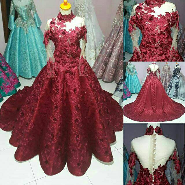 Gaun Pengantin Modern Belimbing Warna Maroon Shopee Indonesia