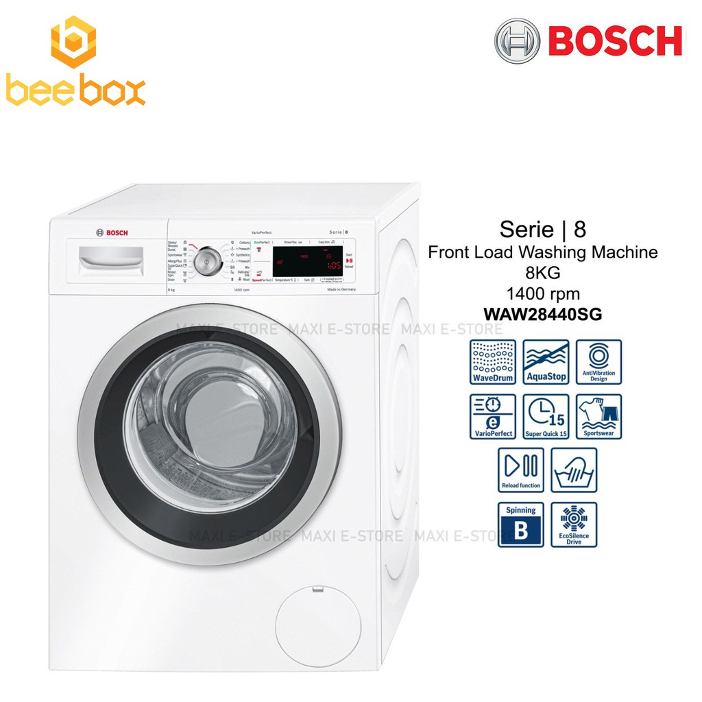 Bosch Serie8 Front Load Washing Machine 8 0kg 1400rpm Waw28440sg