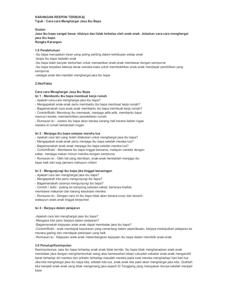 Contoh Karangan Cara Cara Menghargai Jasa Bu Bapa